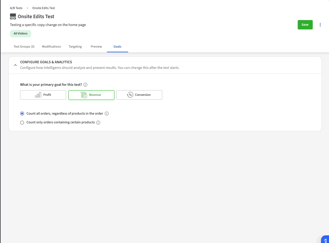 Finally, select whether analytics should by default consider only orders containing certain products you want to test (for example something related to a particular PDP), or orders containing any products in your shop.\