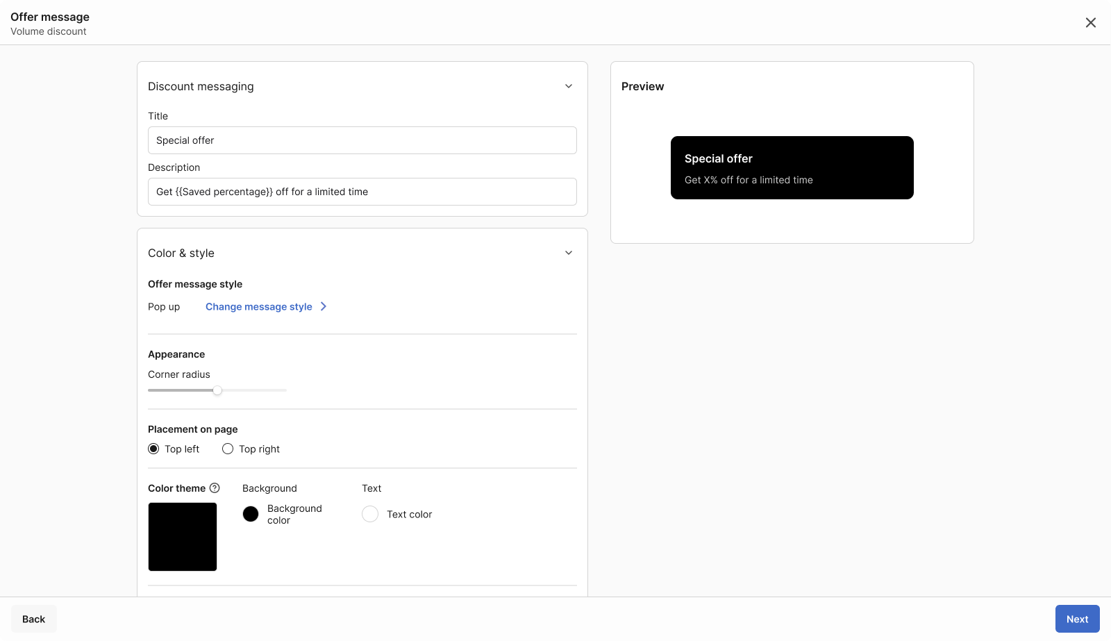 Offer Messages are promotional call-outs that appear as overlays to highlight special offers and drive engagement. They capture customer attention at key moments in the shopping journey. They can be added to an Offer Personalization or Offer Test.